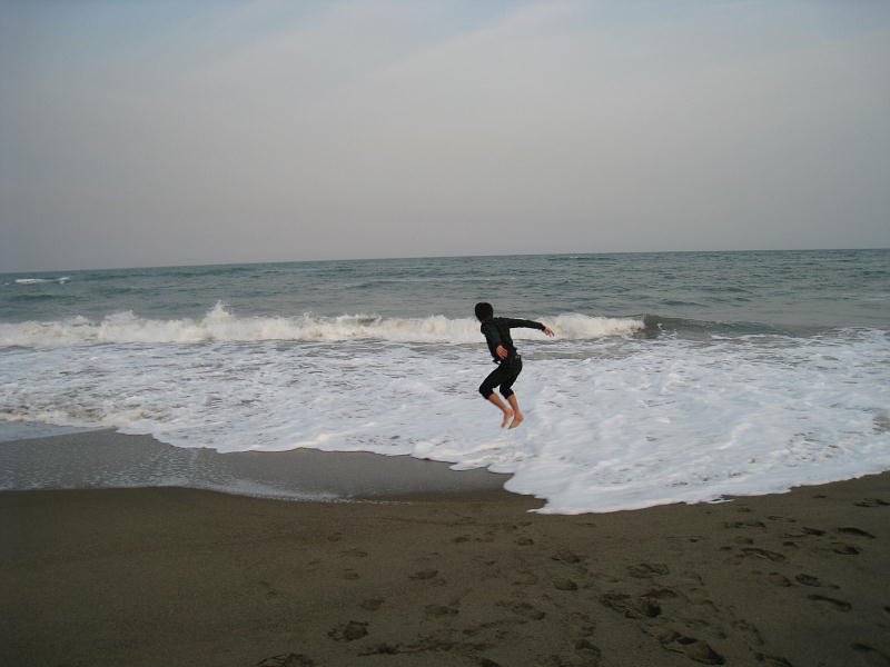 駅から勘に頼って歩き、歩き、地元の少年達に助けてもらい、無事砂浜まで到着。